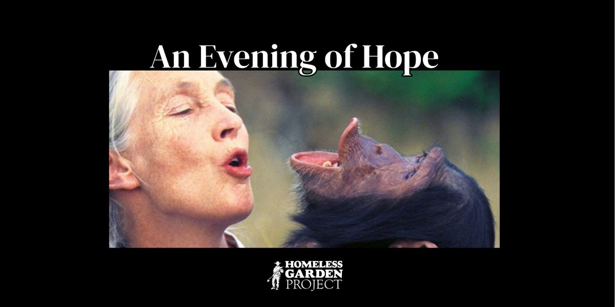 Homeless Garden Project (HGP) is thrilled to invite you to join us Downtown in the Grand Theater at the Del Mar for a chance to gather, celebrate and discuss Hope. We will start by screening National Geographic's 2021 Emmy-nominated documentary on Dr.Jane Goodall, entitled The Hope. The film documents Dr. Goodall's time with family in Tanzania and the approaching 60th anniversary of her arrival to the chimpanzee kingdom in Gombe. Following the film, we'll hear from a broad section of community members and leaders, such as noted author Jonathan Franzen about the role of hope in their lives.