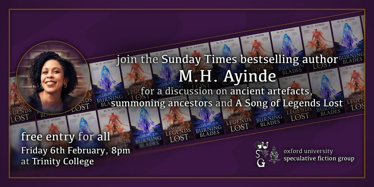 Oxford University Speculative Fiction Group is delighted to host M.H. Ayinde, the Sunday Times bestselling author of A Song of Legends Lost and a winner of Future Worlds Prize.