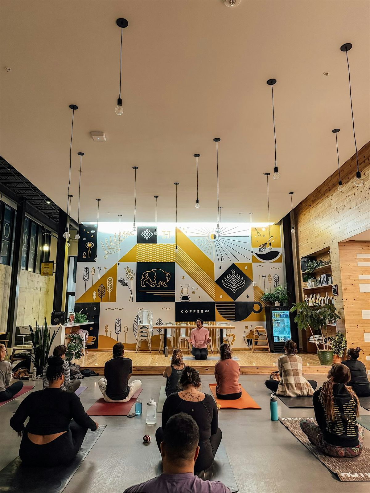 We’ll move the tables and chairs out of the way, light some candles, deep clean the floor, and invite you to bring your yoga mat and a friend for an evening of relaxation, movement, hot drinks, and connection.
