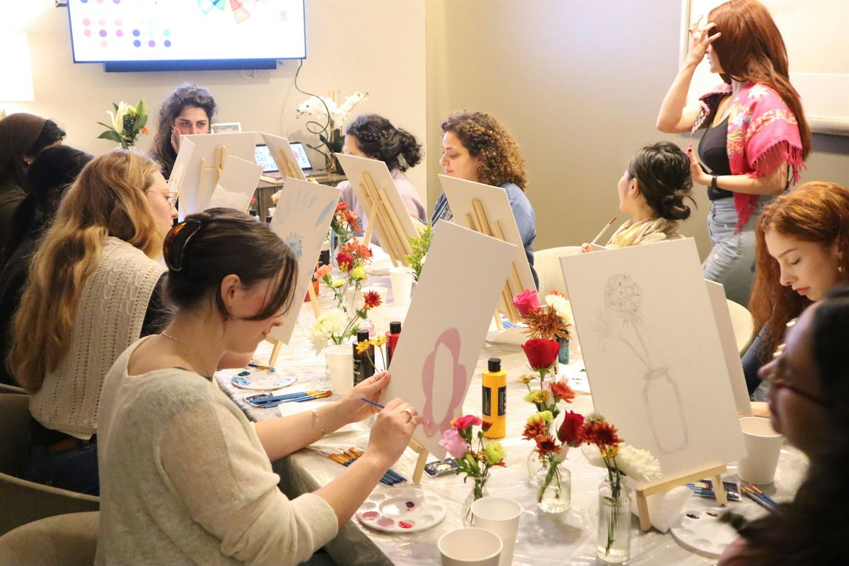 By the end of the evening, you'll walk away with your own painting, a beautiful arrangement — and maybe a few new friends.