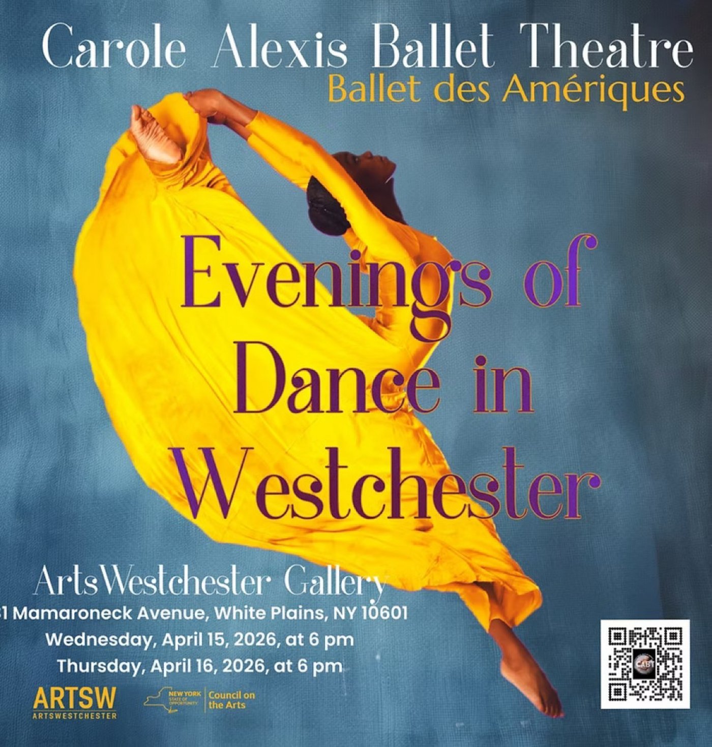 Ballet des Amériques proudly announces the return of its celebrated annual series Evenings of Dance in Westchester to the ArtsWestchester Gallery in downtown White Plains. Performances will take place on April 15 and 16, 2026, offering audiences a rare opportunity to experience world-class dance in an intimate and inspiring setting.
