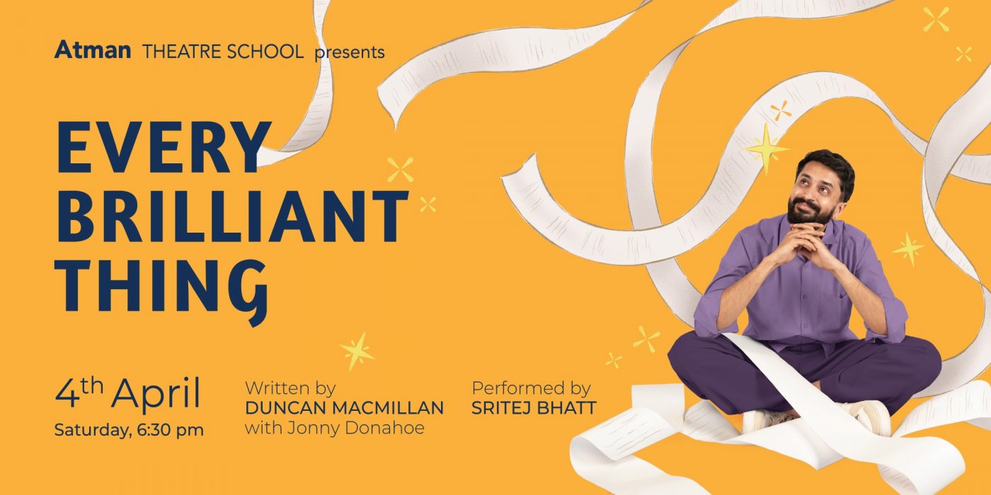 From Olivier Award-nominated writer Duncan Macmillan (People, Places and Things), Every Brilliant Thing comes to Kanoria Centre for Arts (Urmila Kailash Black Box) performed by Sritej Bhatt, produced by Atman Theatre School. This unique and critically acclaimed play has become a global stage phenomenon, playing in over 80 countries worldwide.