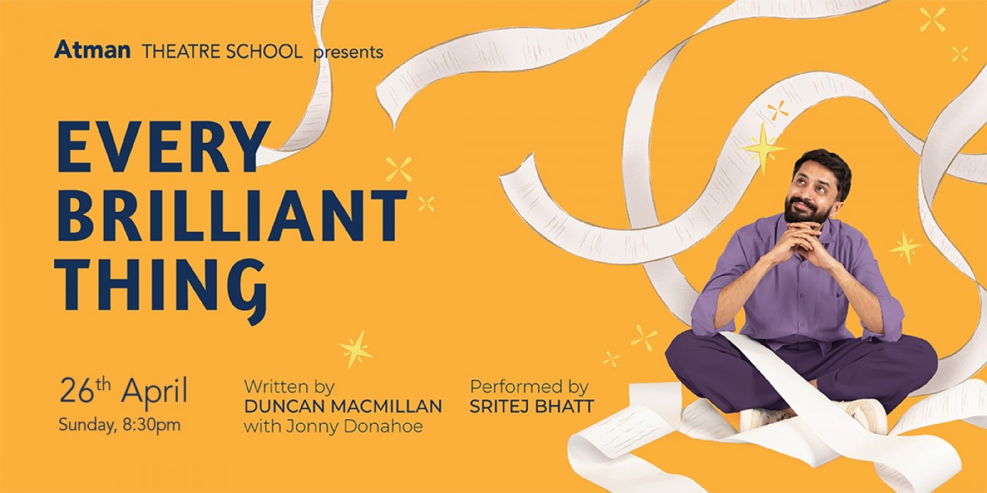 From Olivier Award-nominated writer Duncan Macmillan (People, Places and Things), Every Brilliant Thing comes to Mould - An Art Space performed by Sritej Bhatt, produced by Atman Theatre School. This unique and critically acclaimed play has become a global stage phenomenon, playing in over 80 countries worldwide.
