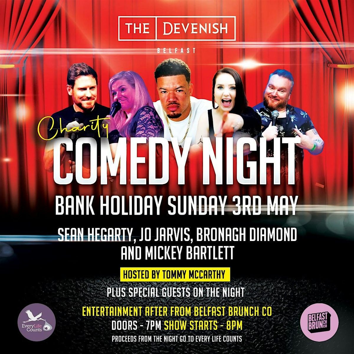 Comedy charity fundraiser for every life counts hosted by Tommy McCarthy, with Mickey Bartlett, conair and the Belfast brunch co