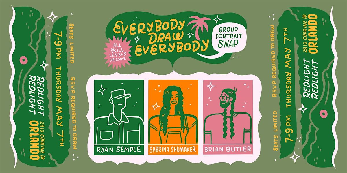 The nationally touring portrait swap Everybody Draw Everybody is happy to come to Redlight Redlight with guest hosts Ryan Semple and Sabrina Shumaker with art guide Brian Butler!