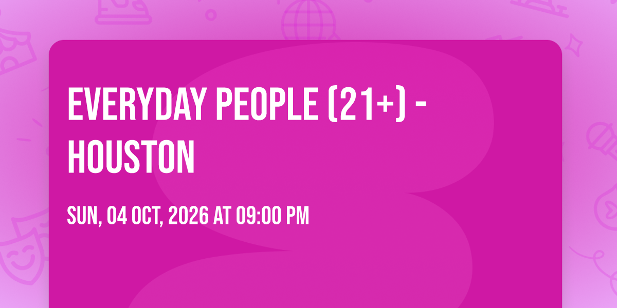 📍 Location: 29.7458, -95.3754🎉 Welcome to Everyday People (21+) - Houston, where dreams come alive and possibilities are endless! 🏛️ Join us at Warehouse Live Midtown in the heart of Houston, TX for an event that defies expectations. 📅 On October 4th, 2026 at 09:00 PM, be part of something truly extraordinary as we bring together innovation, entertainment, and pure magic. ✨ Every aspect has been carefully designed to ensure an unforgettable experience for all our guests. Whether you're seeking adventure, inspiration, or simply a break from the ordinary, this event promises to deliver beyond your wildest dreams. 🎊 Prepare for a journey into the extraordinary!