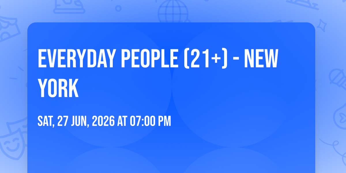 📍 Location: 40.7055, -74.0016✨ Embark on an extraordinary journey at Everyday People (21+) - New York, where every moment promises to be unforgettable! 🌟 Imagine of transforming Pier 17 in the heart of New York, NY into a realm of endless possibilities. 📅 Join us on June 27th, 2026 at 07:00 PM for an experience that will challenge your imagination and exceed your expectations. 🎯 This carefully curated event combines the finest elements of entertainment, innovation, and community spirit. Whether you're an adventure seeker, culture enthusiast, or someone looking for unique experiences, this event offers something special for everyone. 🎊 Don't miss this chance to be part of something extraordinary!