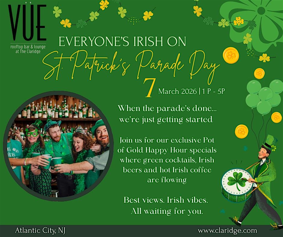 Join us at VÜE Rooftop for our exclusive Pot of Gold Happy Hour specials, where green