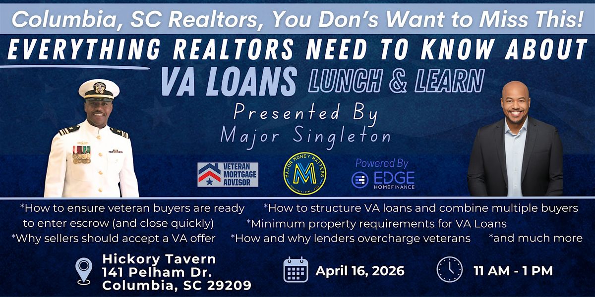 You’ll walk away with practical knowledge to confidently guide veteran and active-duty military buyers in the Columbia market.