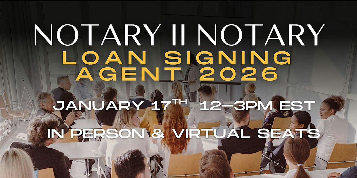 Get ready for an awesome in-person & virtual event designed just for loan signing agents or aspiring loan signing agents! Whether you're new or experienced, this is your chance to learn all the essentials to crush it in 2026. Join us to connect, grow, and boost your skills in a chill, friendly setting. Don't miss out on this great opportunity to step up your game and meet fellow pros!