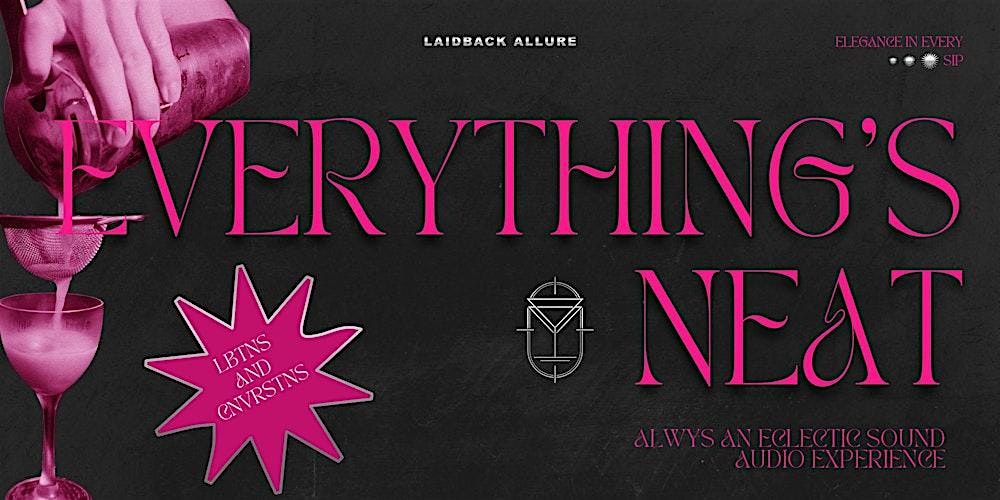 Everything's Neat, a low-key speakeasy experience reconnecting with Laidback Allure's essence and returning to the foundation of cocktails, conversations and community. With music ranging from your favorite Neo-Soul and R&B songs to jazzy hip hop and future beats that you'll probably never hear elsewhere, this evening can be used as pregame to start or the nightcap your Friday evening.