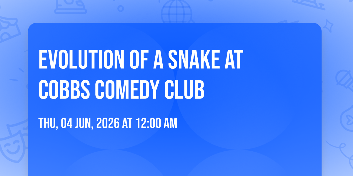 🌟 Be part of history at Evolution of a Snake at Cobbs Comedy Club, an extraordinary gathering that will captivate your imagination! 🏛️ The prestigious Cobbs Comedy Club in San Francisco, CA sets the stage for an unforgettable experience on June 4th, 2026 at 12:00 AM. ✨ They are bringing together the finest elements of entertainment and innovation to create moments that will take your breath away. From the moment you arrive, you'll be immersed in an atmosphere of wonder and excitement. 🎯 This carefully planned event ensures every guest experiences something truly special. 🎊 Early booking is recommended for this must-attend event of the season!