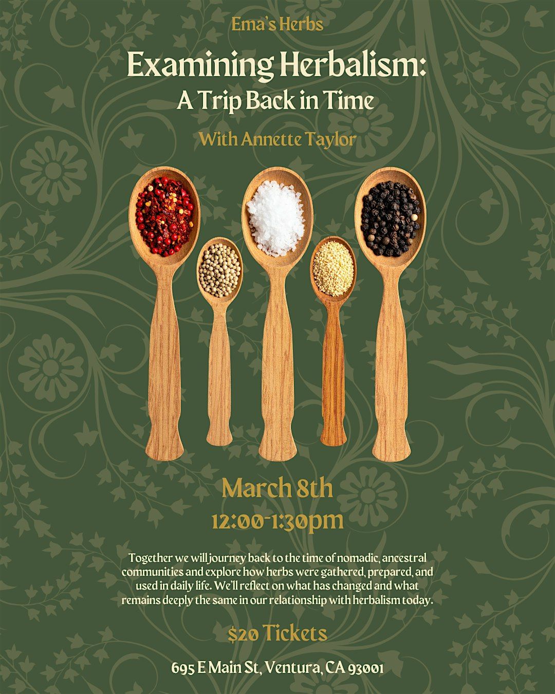 Together, we will journey back to the time of nomadic, ancestral communities and explore how herbs were gathered, prepared, and used in daily life. We’ll reflect on what has changed and what remains deeply the same in our relationship with herbalism today. Through discussion and shared inquiry, we’ll consider how modern herbal practices connect us to our roots and what we can learn from the wisdom of our ancestors.