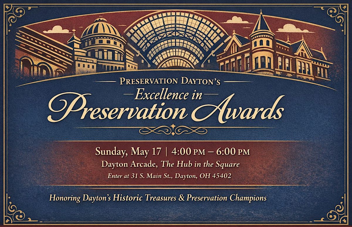 Join us at the beautifully renovated Dayton Arcade as we recognize and celebrate the 2026 award winners. You’ll also get a look at what Preservation Dayton has planned for the year ahead.