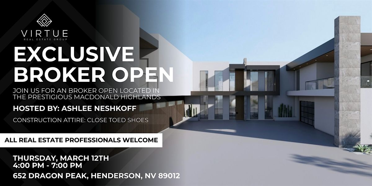 Please join us for this highly exlcusive brokers open in the prestigious neighborhood of Macdonald Highlands. Construction attire is mandatory. Hosted by Ashlee Neshkoff with Virtue Real Estate Group.