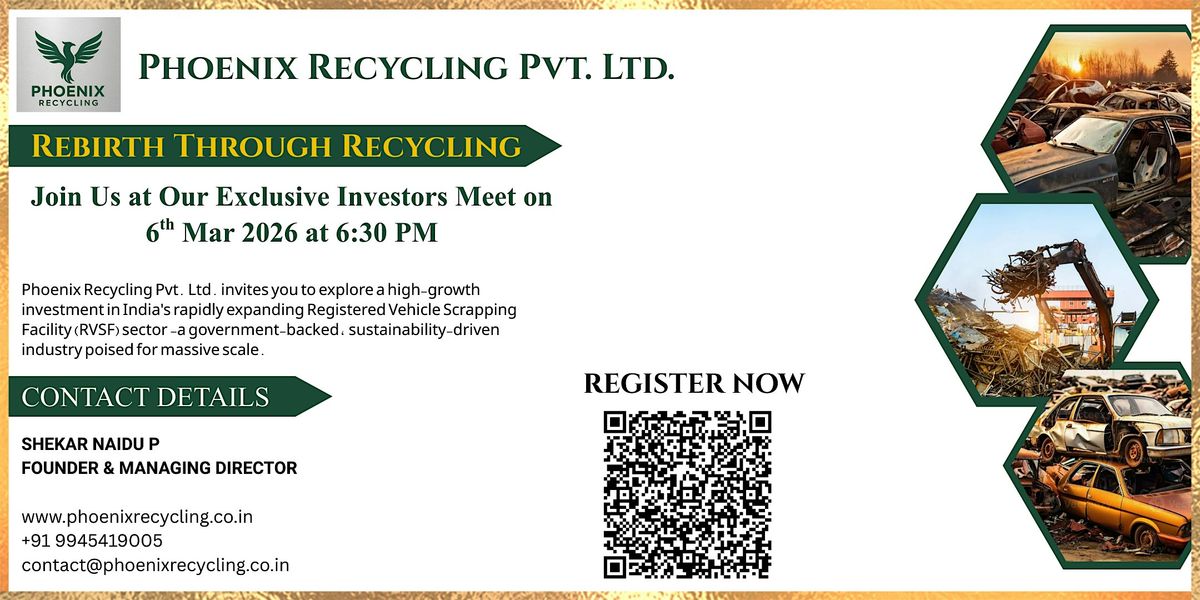 Phoenix Recycling Pvt. Ltd. invites you to explore a high-growth investment in India's rapidly expanding Registered Vehicle Scrapping Facility (RVSF) sector -a government-backed, sustainability-driven industry poised for massive scale.