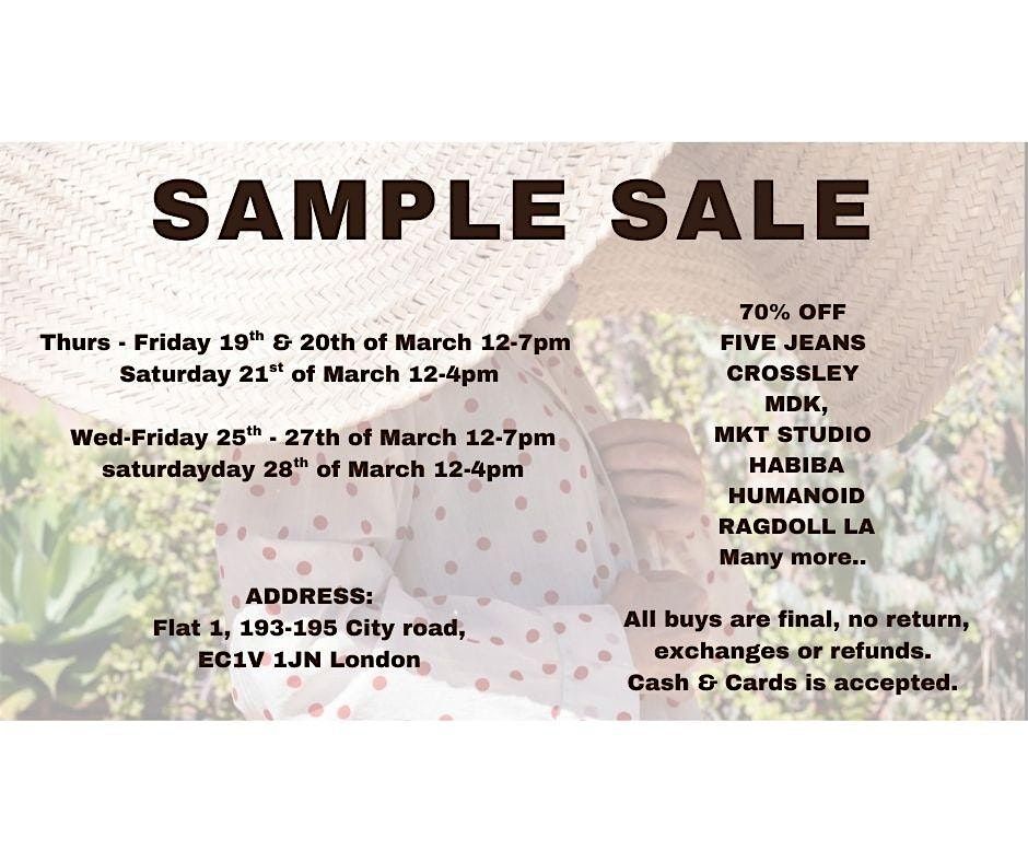 Join us for a one-time Sample Sale Event featuring exclusive pieces, archive styles, and limited designs at up to 70% off.