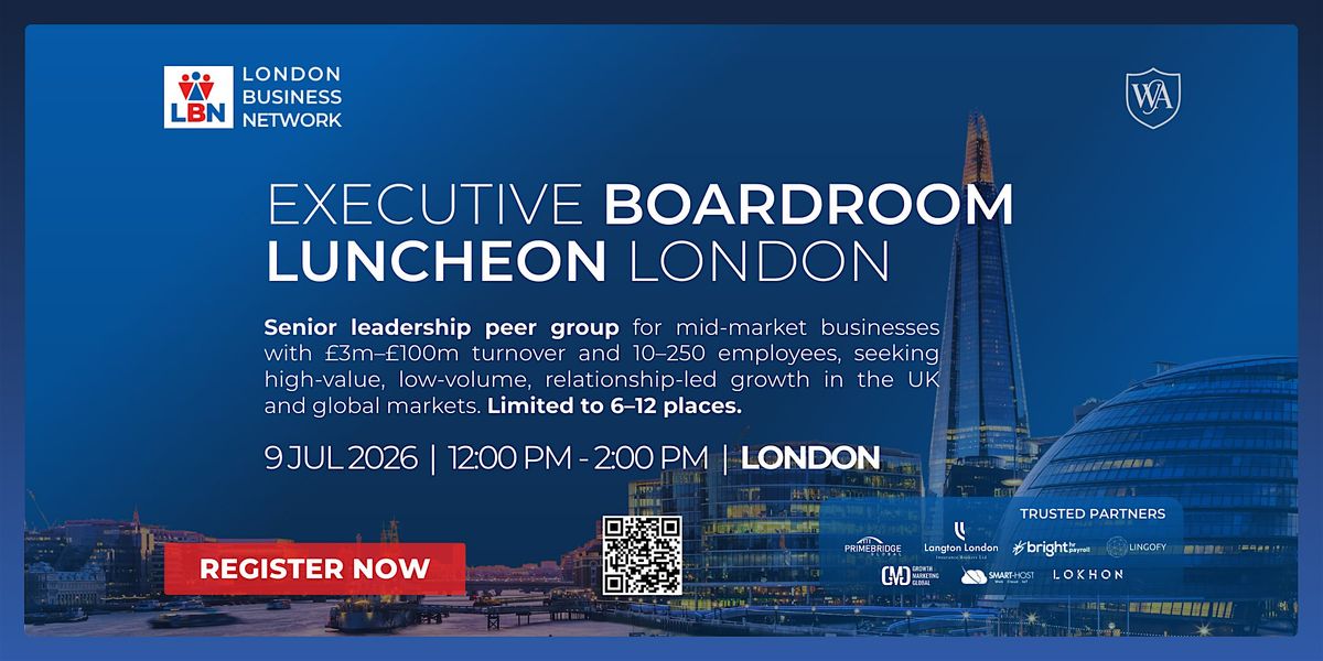 Executive Boardroom Luncheon London by London Business Network is a peer-level private dining and curated networking experience, hosted in an exclusive London venue, connecting senior decision-makers to confidentially exchange insight, challenges, best practice, and strategic and commercial opportunities.