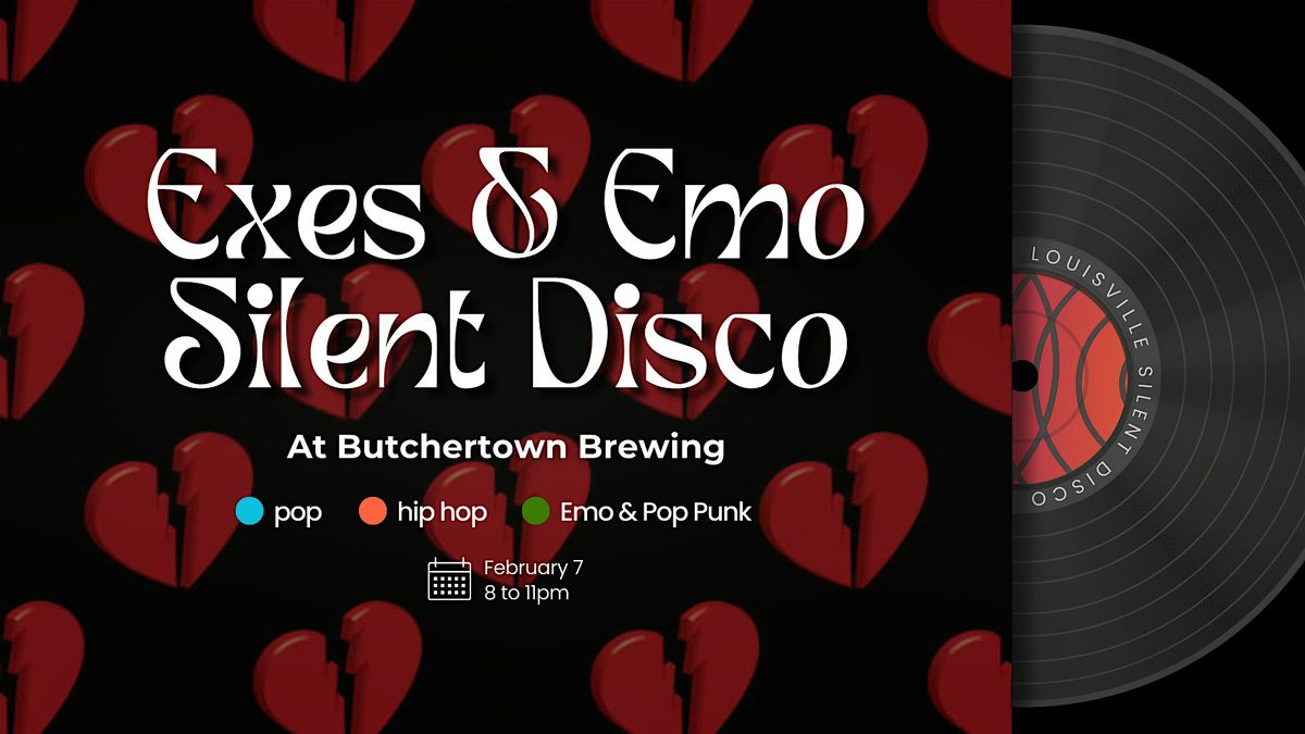 Join us at Butchertown Brewing on February 7th for Exes & Emo: A Heartbreakers Silent Disco! We're dedicating one channel to all the angstiest emo and pop punk hits we can fit into this three-hour event. Show Cupid what you really think about his stupid arrow and come belt your broken heart out!