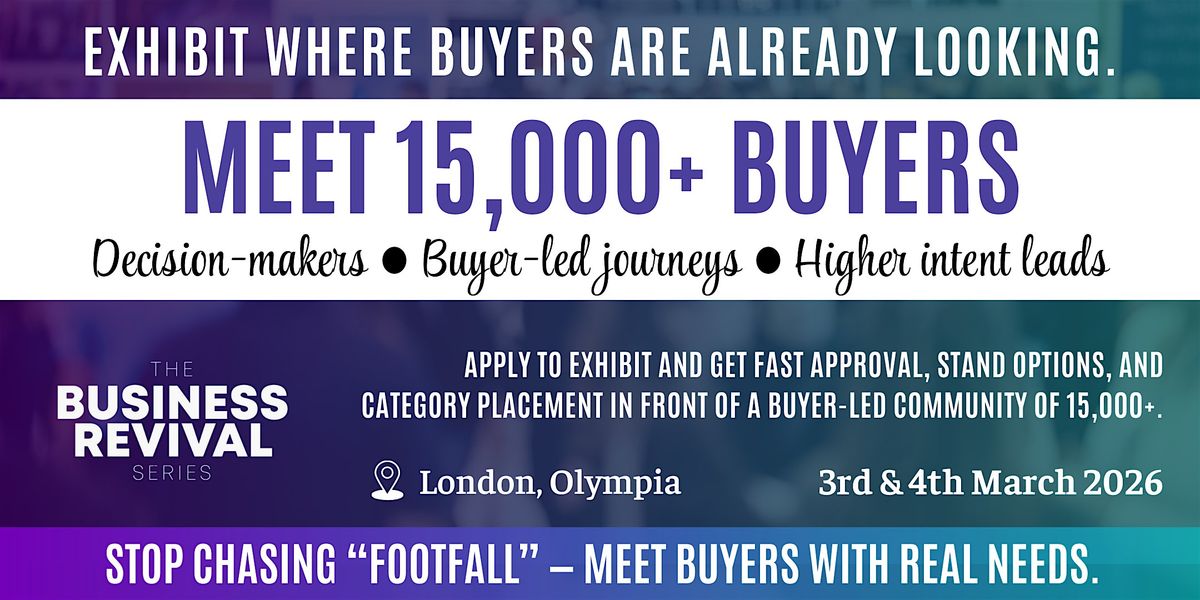 Business Revival Series (London Olympia, 3–4 March 2026) is bringing together a buyer-led community of 15,000+ active buyers across multiple categories — owners, directors, managers, and decision-makers attending with clear goals.