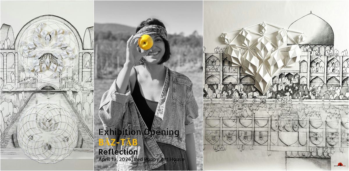 As part of A Season for Iran, we are honored to present BĀZ-TĀB—meaning reflection—an immersive performance and installation rooted in the architectural memory of Iran. Through large scale charcoal hand-drawing, paper sculpture, sound, and spatial performance, the work reconstructs the dreamlike fragments of places remembered: courtyards, domes, wind towers, and the intimate interiors of Iranian homes. Centered around the symbolic courtyard and howz (pool), the audience is invited to gather inside a living memory-space shaped by longing, displacement, and return. BĀZ-TĀB becomes not only an artwork, but a collective act of remembering the spaces, sounds, and emotions that continue to live within us across distance. Throughout the evening, Sima and Nima will serenade us with songs that echo the tenderness, longing, and resilience carried through the spaces of memory.