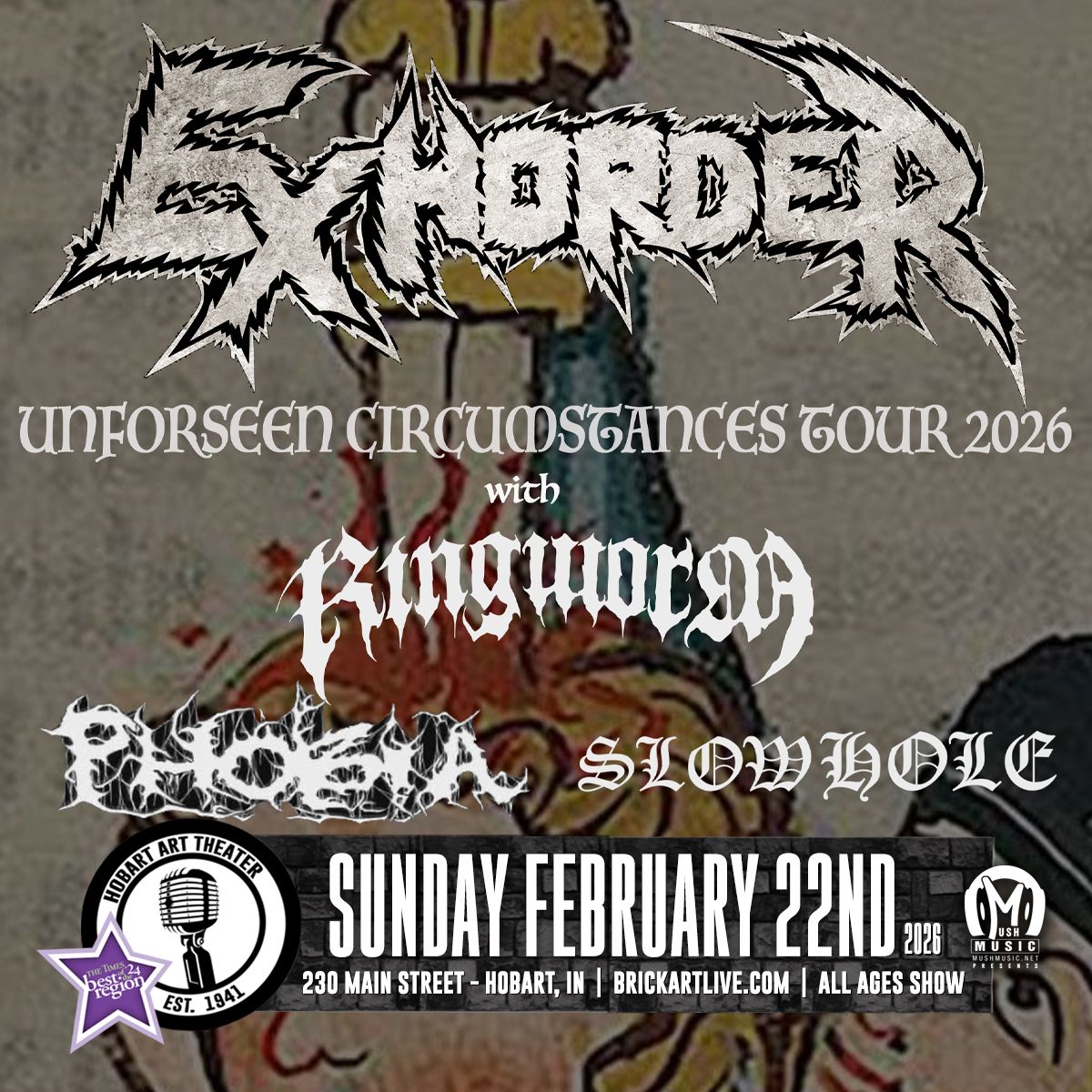 🌟 Journey into wonder at Exhorder, where extraordinary experiences await around every corner! 🏛️ Set against the backdrop of Reggie's Rock Club in dynamic Chicago, IL, this event promises to exceed all expectations. 📅 Join us on April 17th, 2026 at 06:00 PM for a celebration that combines innovation, entertainment, and community spirit in perfect harmony. ✨ There will be an atmosphere where memories are made and stories come alive, ensuring every guest experiences something truly remarkable. 🎊 This is more than just an event; it's a journey into the extraordinary!http://maps.seatics.com/GeneralAdmissionEvent_2018-10-03_1713_SVGC_tn.gif