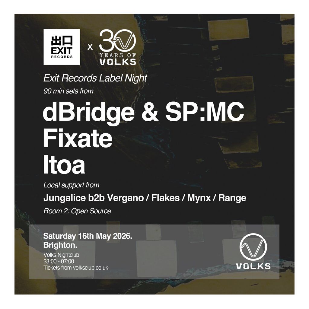 30 years of volks presents - Exit Records - Dbridge & Sp:MC, Fixate, Itoa +Support