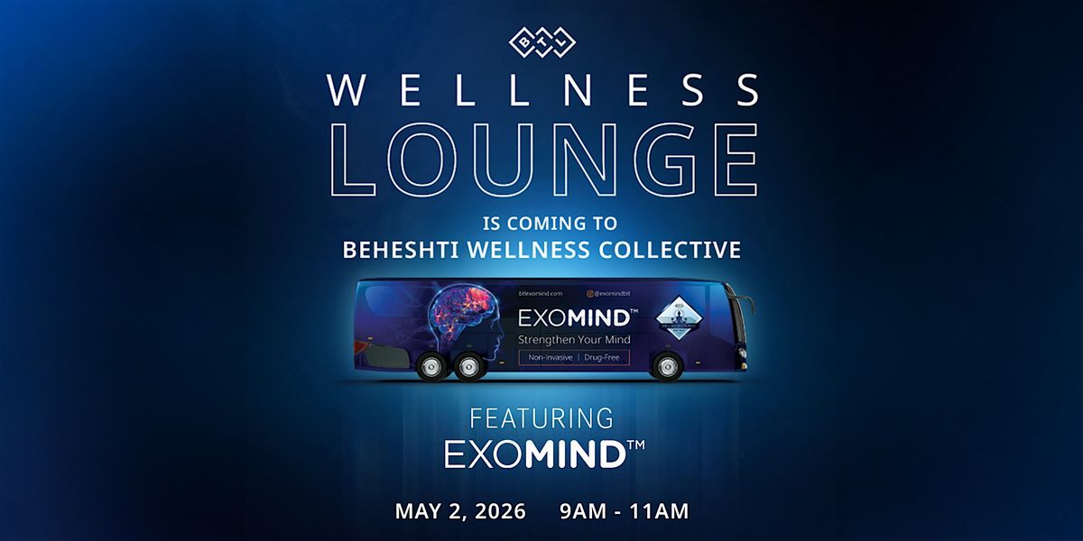 The Wellness Lounge Bus Tour is coming to Beheshti Wellness Collective—offering a rare opportunity to experience ExoMind™, a non-invasive, brain-based technology designed to support mental clarity, stress resilience, and emotional regulation.