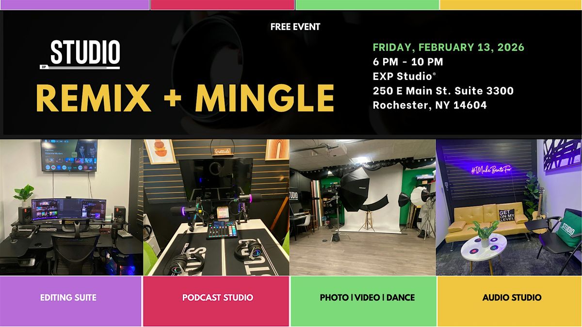 Welcome to Remix + Mingle — a free, interactive open house + networking night designed for creators, artists, entrepreneurs, and community builders who want to connect, collaborate, and see what’s possible at EXP Studio®.
