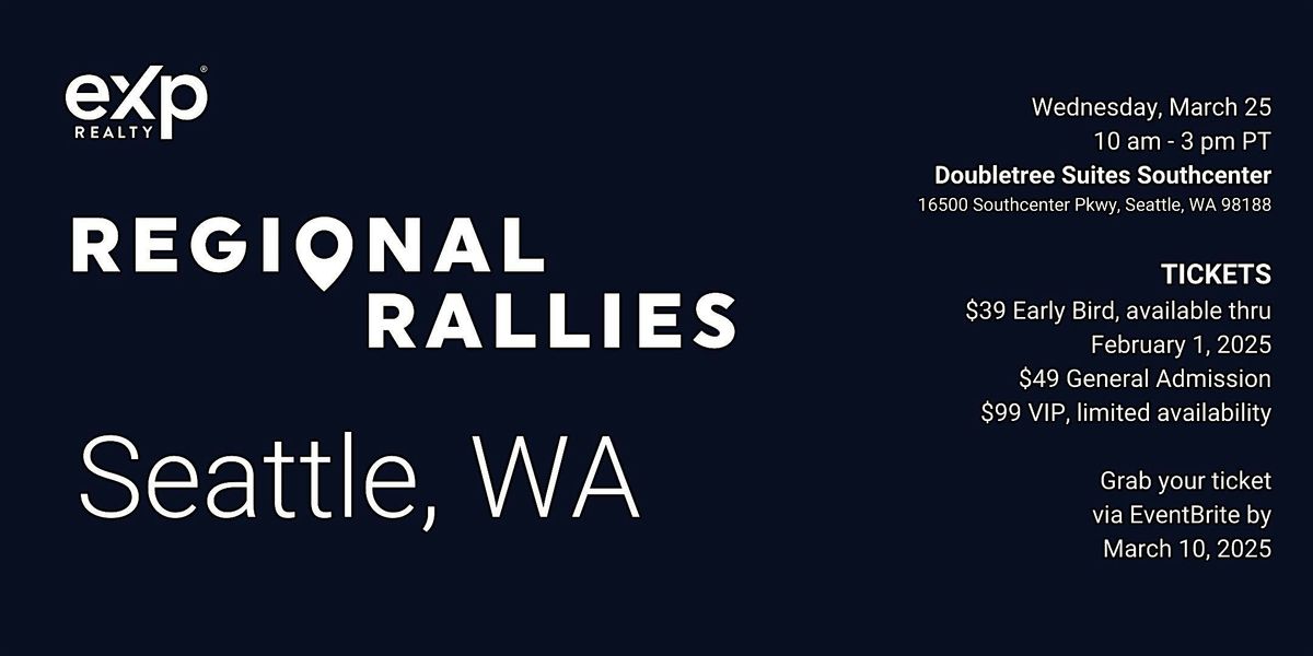 Get ready to connect, learn, and grow at the eXp WA Regional Rally—an exciting online event tailored just for you. Whether you're a newbie or a seasoned pro, this rally is all about sharing ideas, networking, and having a great time with our local community. Don’t miss out on the chance to be part of this awesome meetup!