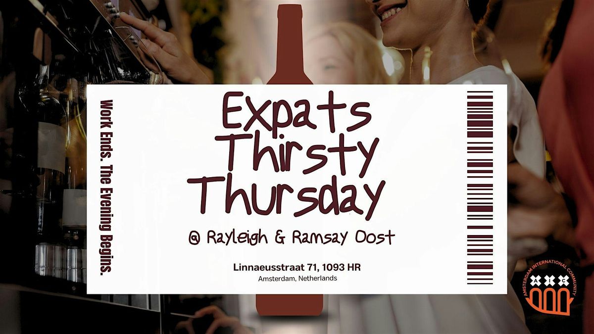 Are you ready to quench your thirst for connection and indulge in a delightful evening of drinks ans socialization? Join us for our upcoming event "Expats Thirsty Thursday" hosted at Rayleigh and Ramsay Oost. Here, you'll discover a haven with an extensive selection of 100 different wines available for tasting. It's the perfect backdrop for meaningful conversations, new connections, and shared experiences.