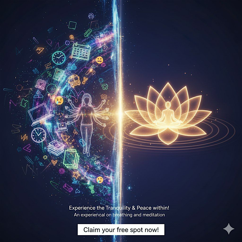 Cut through the mental noise and find a clear, calm center. Join us for an in-person, free 60-minute workshop designed to guide you from mental chaos to inner serenity. Led by a certified Art of Living Breath & Meditation Instructor, in this sessoin, experience powerful breathing techniques and meditation.