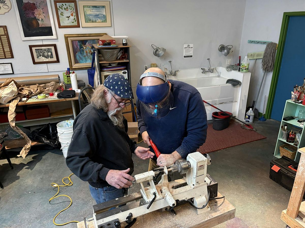 Turn Wood Into Wonder! The Indiana County Woodturners offer guided 30 minute lathe sessions and making your own wooden top.