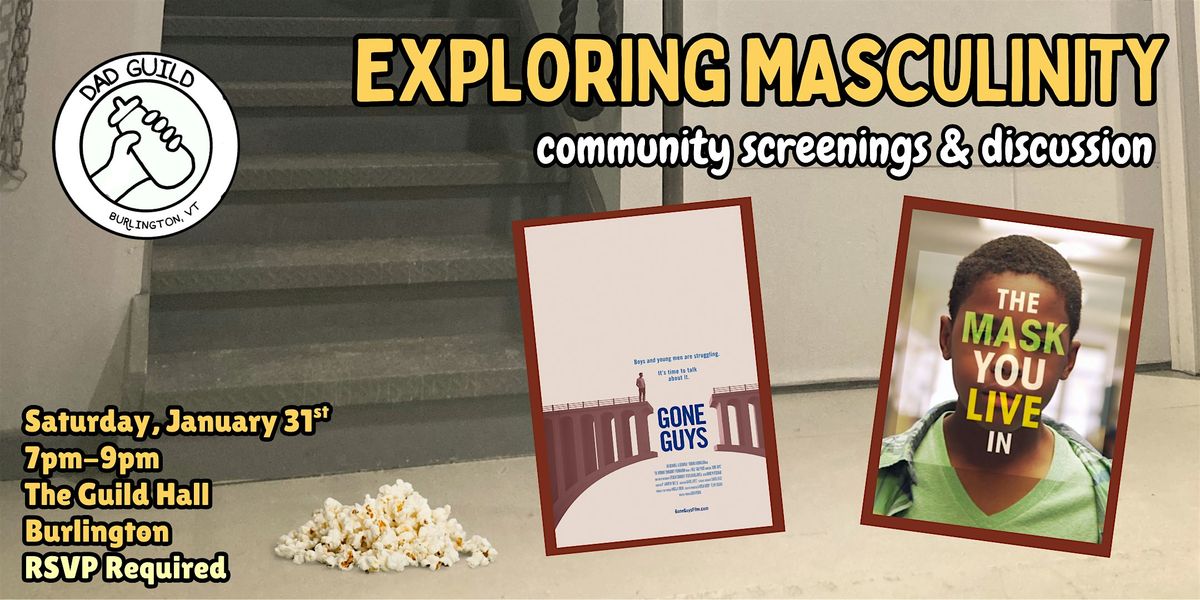 As described above, the documentary Gone Guys has been popping up at screenings across the state over the past six months. On Saturday, January 31st from 7pm-9pm, Dad Guild will be hosting a community screening at the Guild Hall located in the Soda Plant. In addition to watching the 45-minute film, we will also be screening half of the acclaimed 2015 documentary, The Mask You Live In, from The Representation Project. Following both screenings, Dad Guild staff will host an informal discussion for folks to share their reactions, ask questions, and ensure all participants have a deeper understanding of how the patriarchy harms us all. This community screening is open to all members of the community.