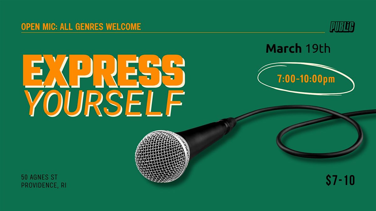 Express Yourself is an open mic where producers, rappers, singers, poets, and storytellers share their work in a relaxed, creative setting. Come through, perform, or just enjoy the vibe.