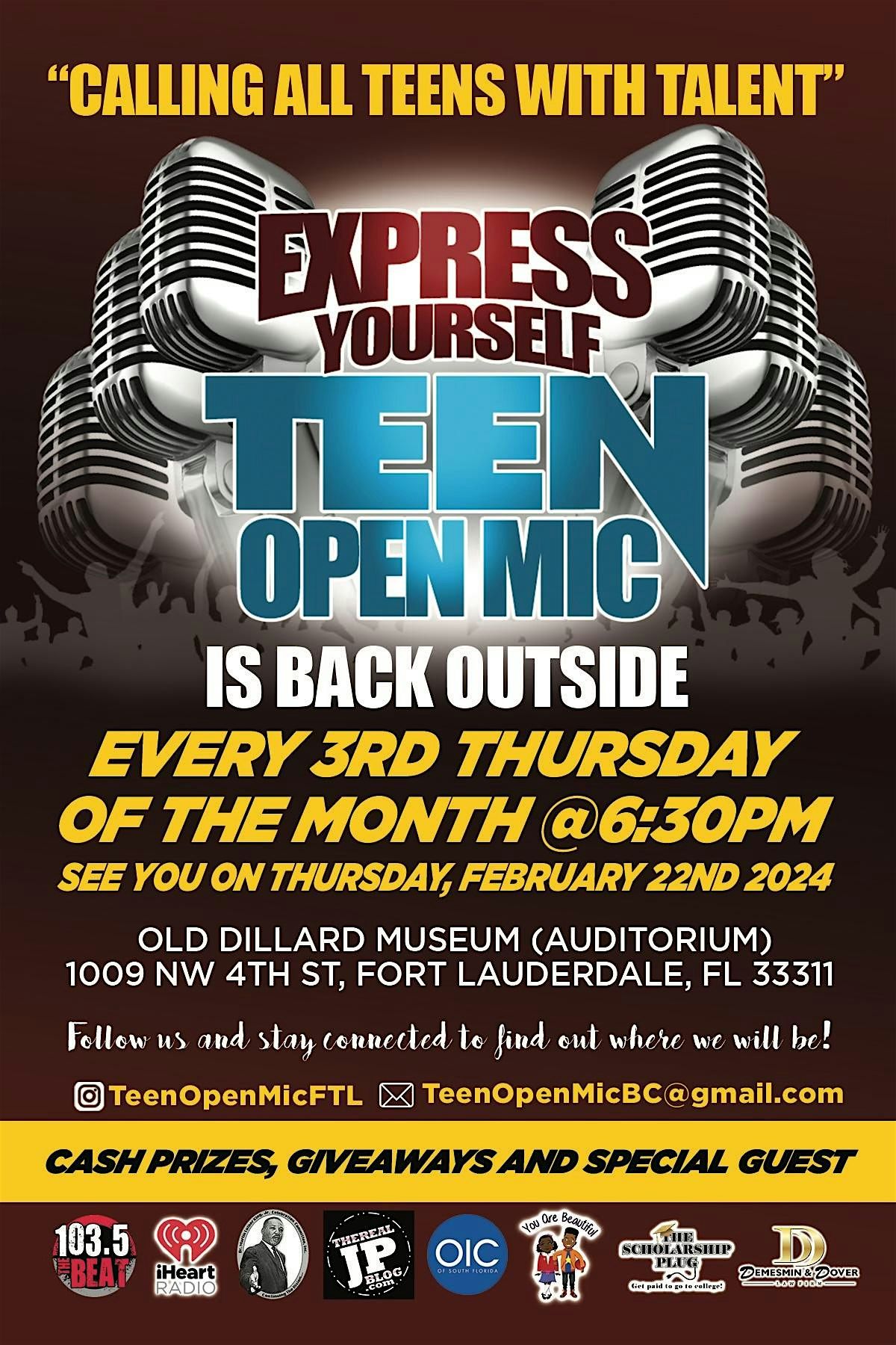 Express Yourself Teen Open Mic is a monthly (every 3rd Thursday of the month) event for youth 21-years-old and under. We do our best to provide a safe space for youth to not only express themselves through the arts (music, dance, oratory, poetry, painting, inventions-tech etc.), but also learn from industry professionals. In partnership with "UBFC" this month ...