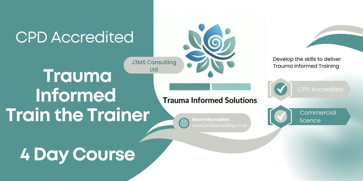This is an expression of interest to attend a 4 day CPD Accredited Trauma Informed Train the Trainer course. There are very limited spaces left and if you "book a place" then we will contact you separately to arrange for the booking form to be completed and for your payment to be made. The cost of the 4 days which includes your accreditation to Trauma Informed Solutions for the first 12 months is £1950 + VAT