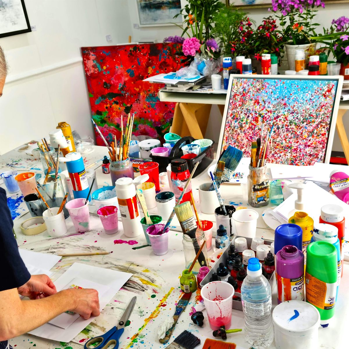 This inspiring workshop invites you to develop your own unique artwork while exploring expressive mark‑making and dynamic painting techniques inspired by the colours and movement of summer flowers.