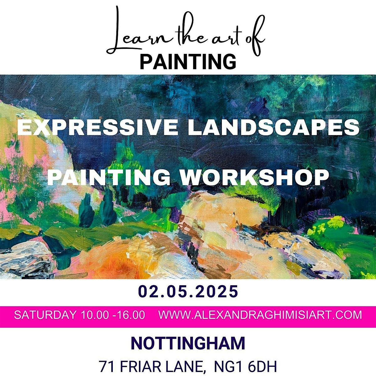 Immerse yourself for a full day in the expressive world of acrylic landscape painting. This welcoming, hands-on workshop is open to everyone, whatever your level of experience. Through guided demonstrations and creative exercises, you’ll explore vibrant colour, bold mark-making, and loose, energetic brushwork to create a landscape full of movement and atmosphere. The focus is on expression rather than perfection, giving you the freedom to experiment, build confidence, and enjoy the process of painting.