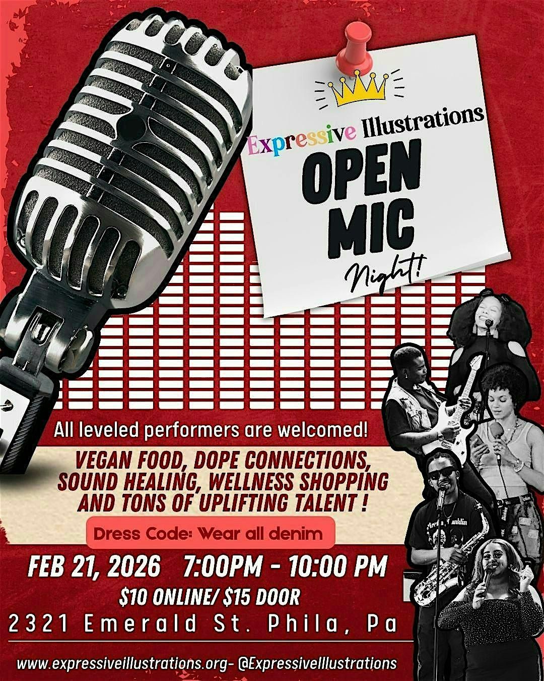 Ready to share your talent or just kick back and enjoy some awesome performances? Expressive Open Mic Night is the perfect spot! Bring your vibes, your voice, your poetry, or just your good energy. This is an in-person event where creativity flows and everyone’s welcome.Made with healing intentions and good vibes for beginners and experienced to share their new or old works; and soak in the positive, artsy atmosphere. Grab your crew and be part of the fun! Sound healing,vegan delicious food, wellness vendors, and and latmosphere that will lift your mood!
