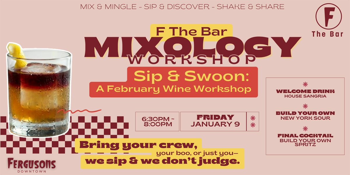 Join us at F the Bar for our February Wine Mixology Workshop — a playful, hands-on night designed for connection, curiosity, and seriously good pours. Whether you’re planning a date night, Galentine’s outing, or a little self-love soirée, this workshop is all about mixing, mingling, and sipping something special.