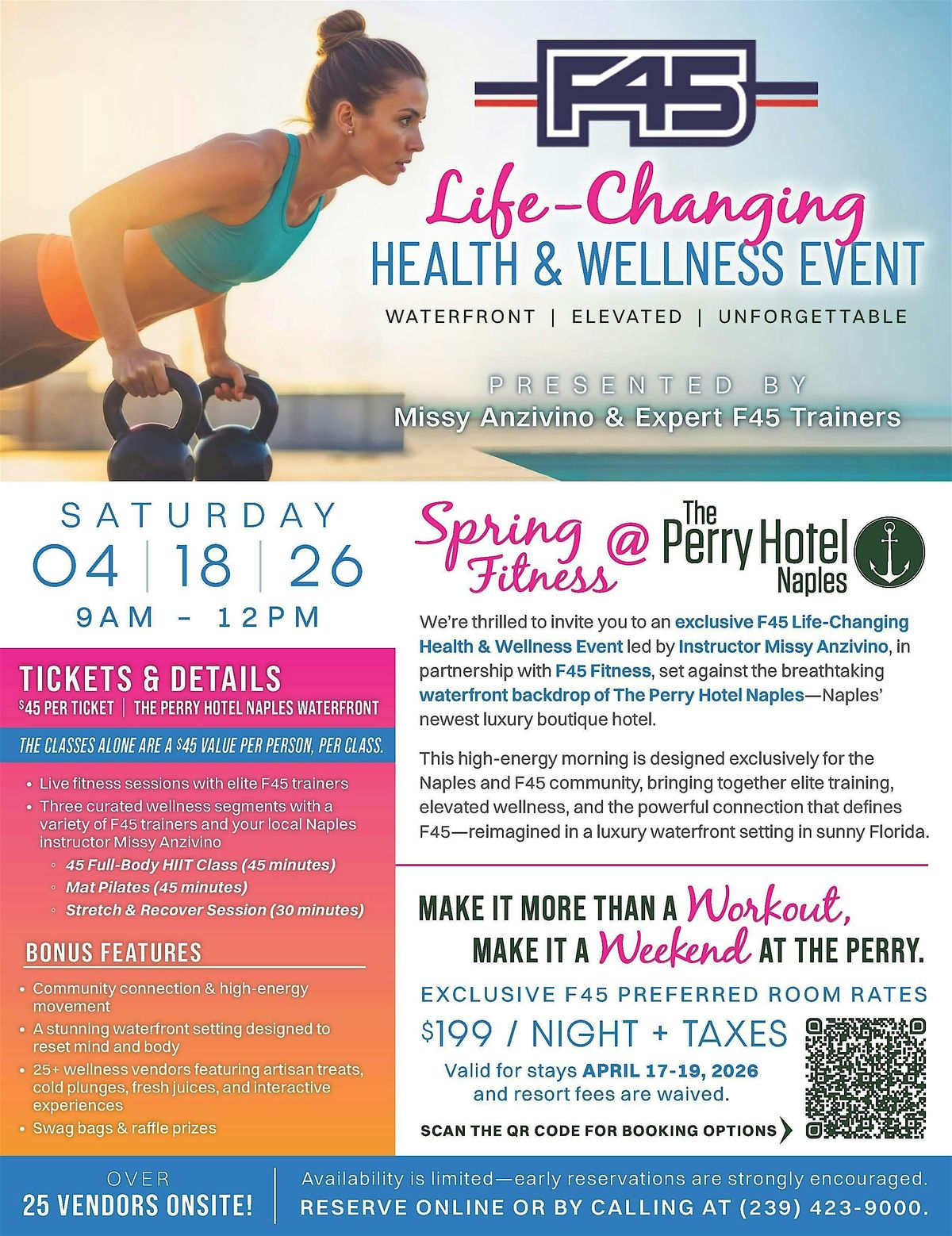 This high-energy morning is desinged exclusively for the Naples and F45 community, bringing together elite training, elevated wellness, and the powerful connection that defines F45 - reimagined in a luxury waterfront setting in sunny Florida.