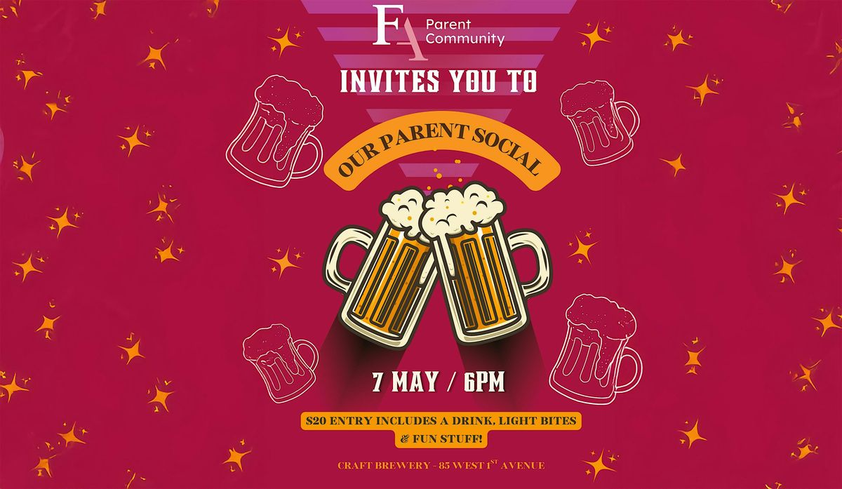 Join us for a relaxed, adults-only evening at CRAFT Beer Market on False Creek. No speeches, no schedules - just great drinks, good food, and the chance to unwind with other FA parents who get it.