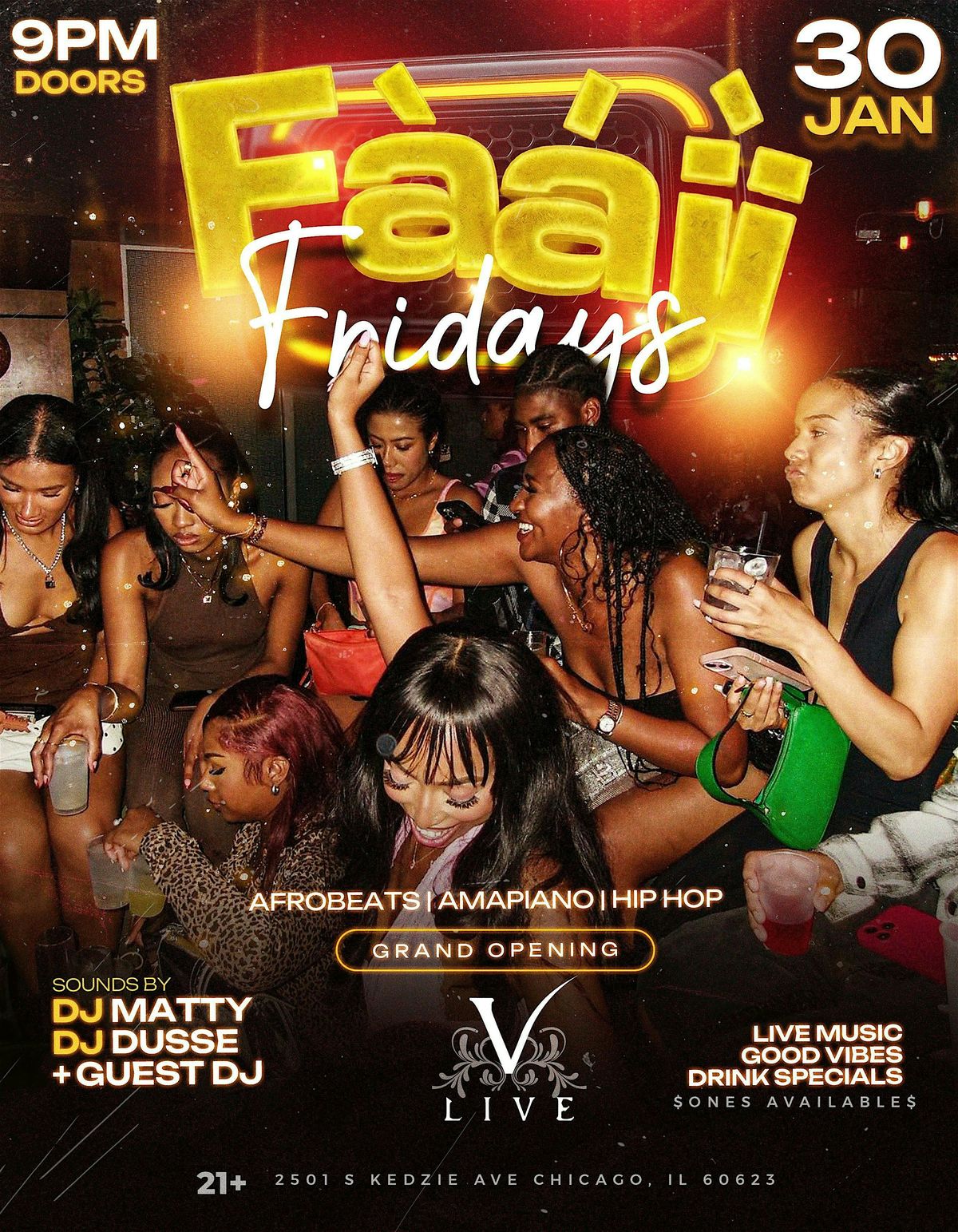 FAAJI FRIDAYS ! NEW EVERY FRIDAY AFROBEATS WEEKLY! 21+ . VLIVE CHICAGO! SOUNDS BY DJ DUSSE & DJ MATTY MONTANA + GUEST DJSAbout this Event