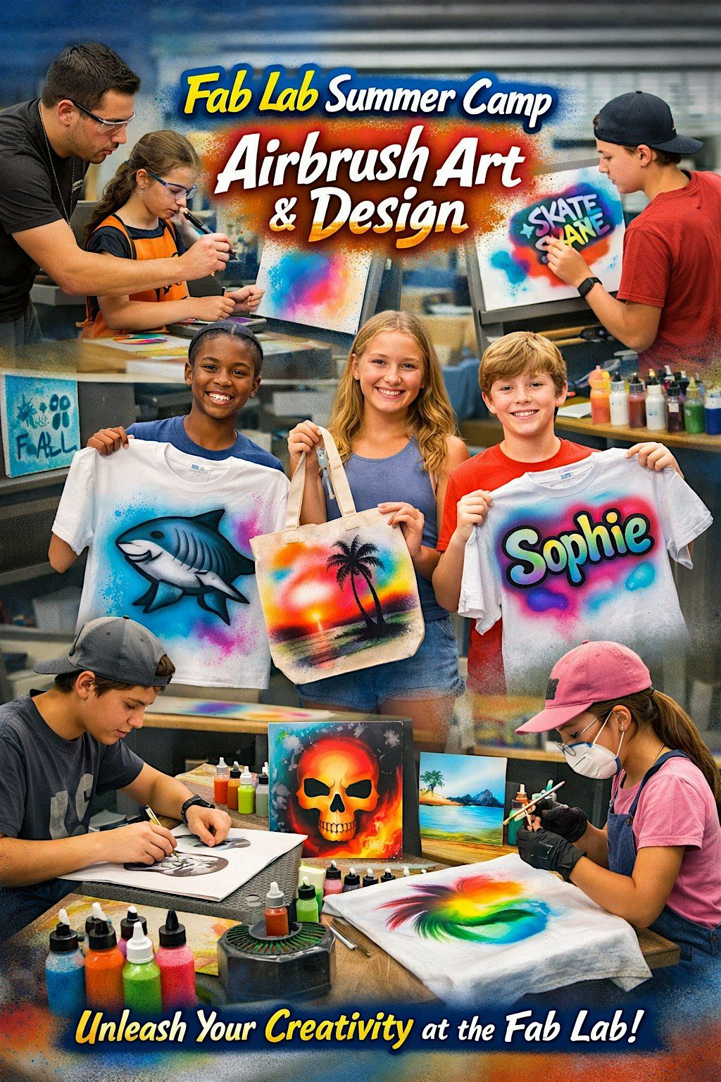 Unleash your creativity this summer with our Airbrush Art & Design Camp at the Fab Lab! This hands-on program introduces campers to the exciting world of airbrush painting—where technology, art, and imagination come together.