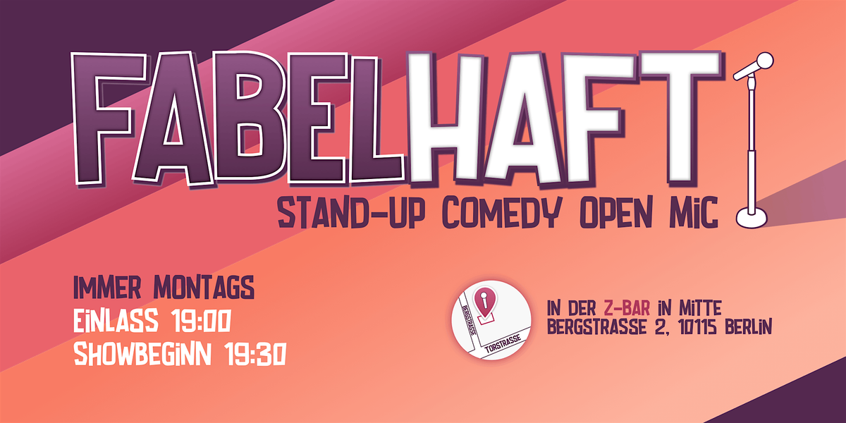 Bei Fabelhaft Comedy teilen sich die großen Talente der Berliner Comedy-Szene eine Bühne, um ihre neuesten Jokes zu testen und alte Gags rund zu spielen. Freut euch auf authentische Stand-Up-Comedy mit gestandenen Profis und hungrigen Anfängern.