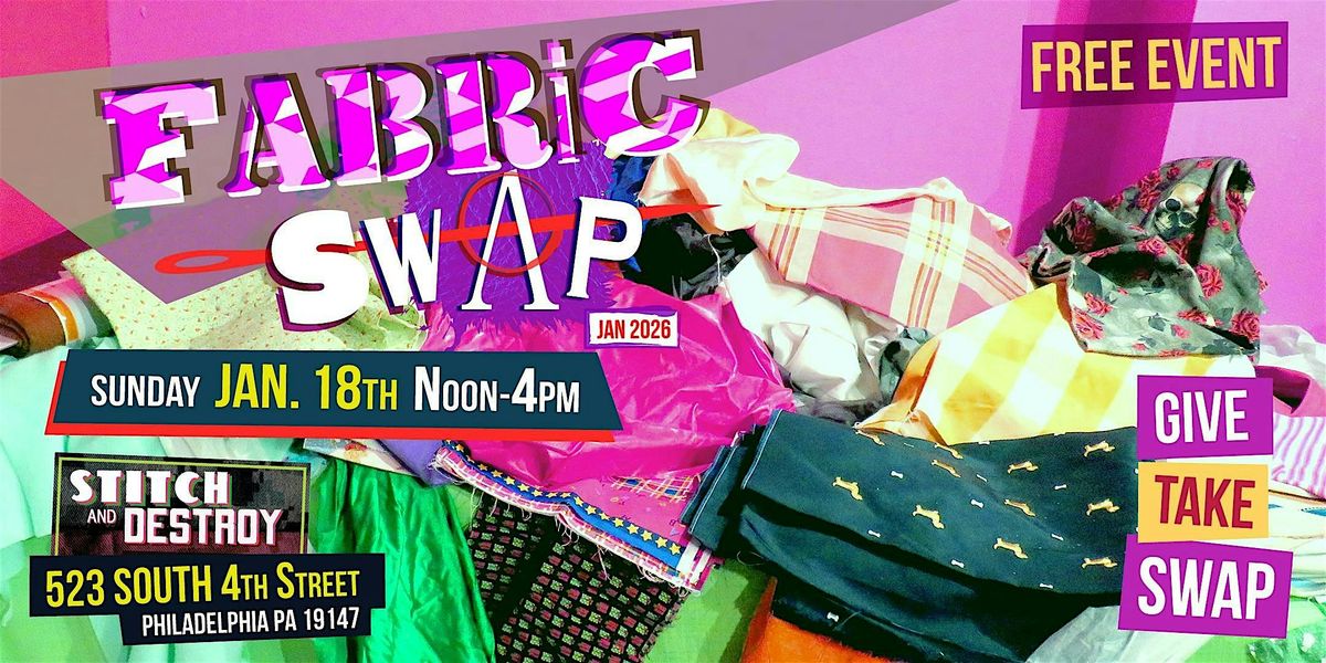 You do not need to bring fabric to take fabric! This is a FREE event. RSVP ticket not required. Any fabrics brought to the swap and not taken during the event are considered donated to STITCH AND DESTROY.