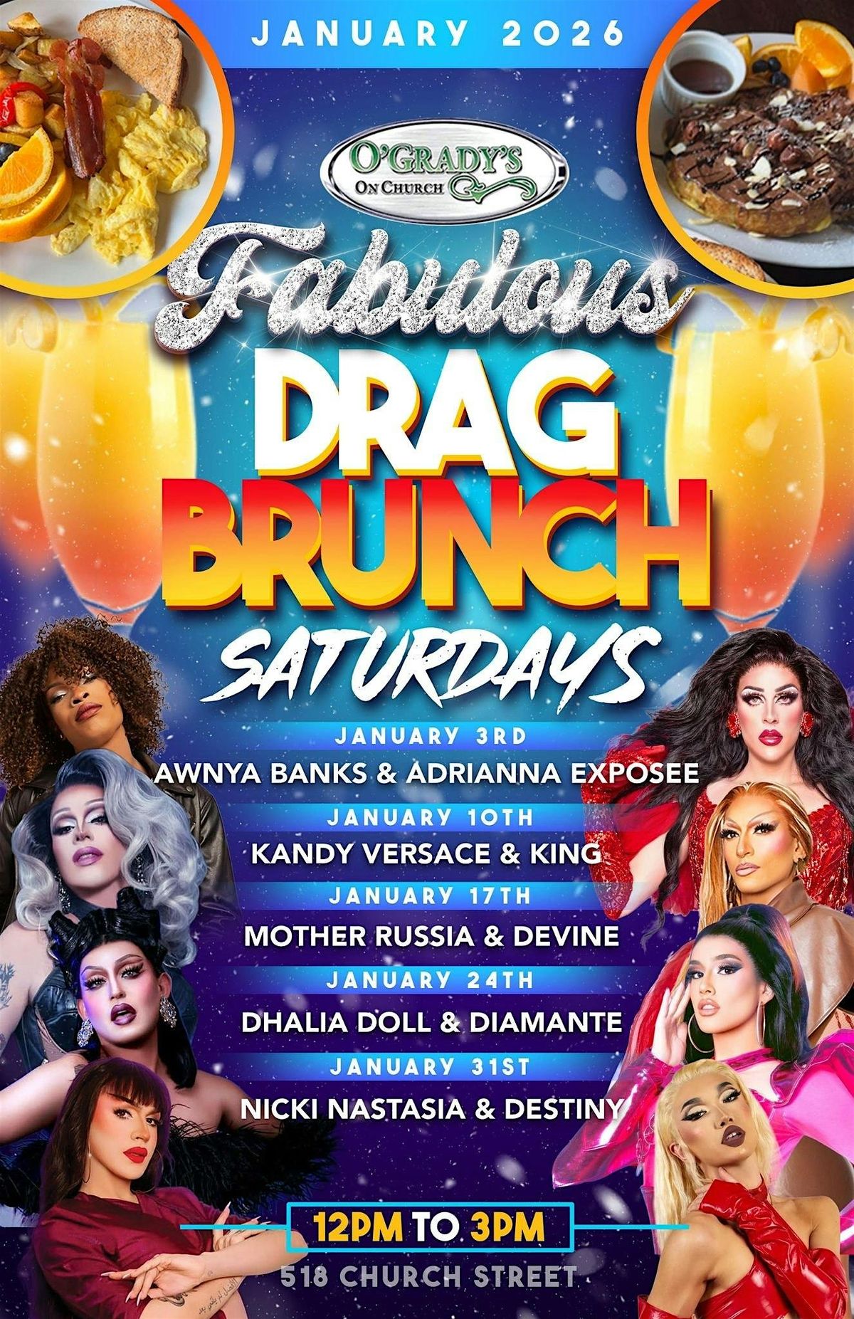 Each Saturday is a different collaboration of performers. Check our Instagram @ogradysonchurch for the upcoming Queen schedule.