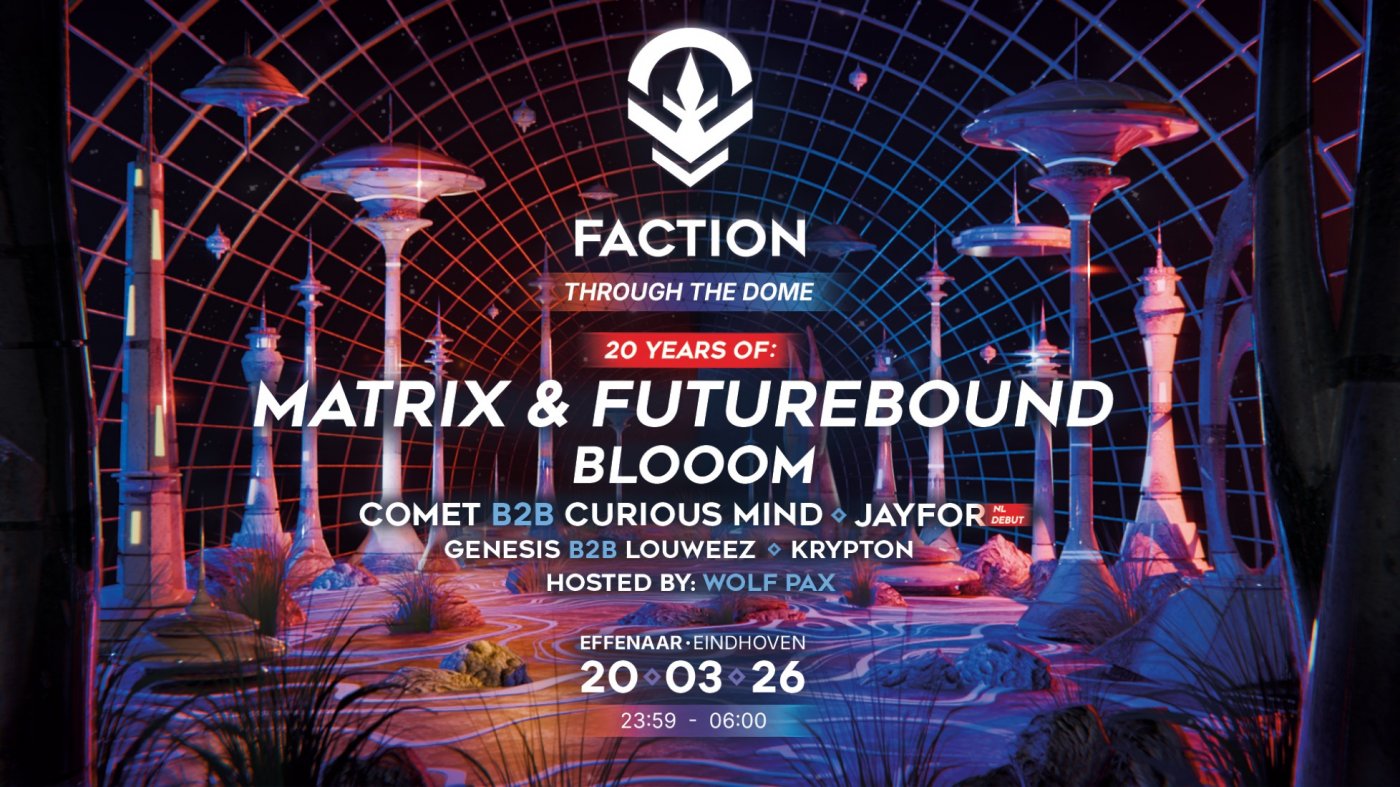 We are celebrating 20 Years of Matrix & Futurebound, the NL debut of UK’s rising star Jayfor, and you can expect powerful sets of Blooom and more!
