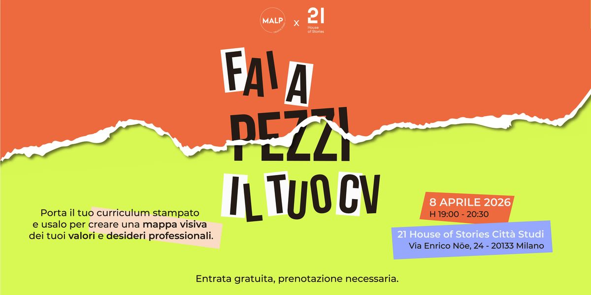 Fai a pezzi il tuo CV è un laboratorio creativo dove "faremo a pezzi" il tuo curriculum per ricostruirlo in modo autentico, visivo e coraggioso. Non siamo consulenti HR, siamo creative che credono nel potere della manualità come strumento di consapevolezza.